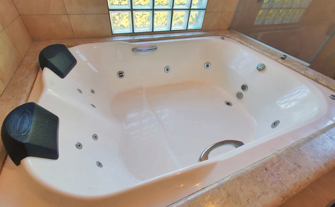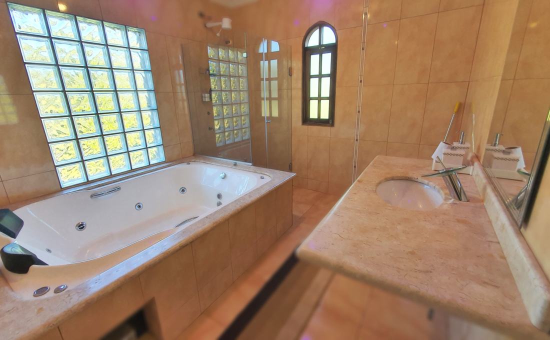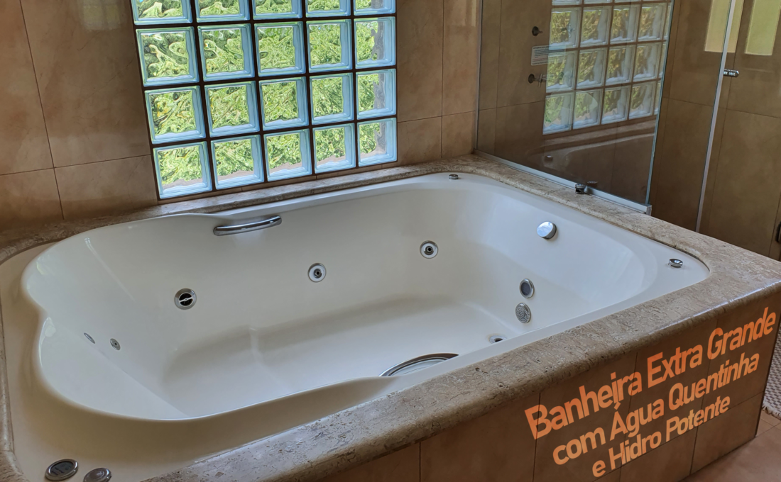 - Banheiro da suíte completo com banheira de hidromassagem extra grande para casal;