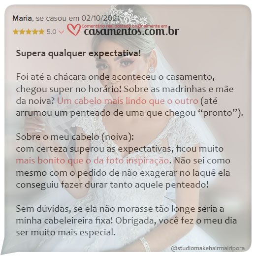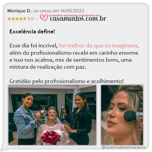 Outras páginas relacionadas em nosso site: Penteados para Casamento; Maquiagem para Casamento; O Studio Make Hair; Estadia ou Pacote Lua de Mel.